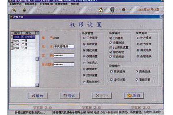 - 軟件系統(tǒng)可對系統(tǒng)管理員、操作工的操作權(quán)限進行設(shè)置。